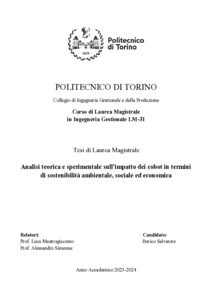 Analisi teorica e sperimentale sull'impatto dei cobot in termini di sostenibilità ambientale, sociale ed economica = Theoretical and experimental analysis of the impact of cobots in terms of environmental, social, and economic sustainability.