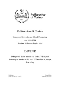 DIVINE: DIagnosi delle malattie della VIte per immagini tramite le reti NEurali e il deep learning = DIVINE: DIagnosis of grapeVIne diseases through NEural networks and deep learning.