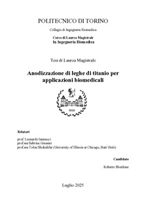 Anodizzazione di leghe di titanio per applicazioni biomedicali = Anodization of titanium alloys for biomedical applications.