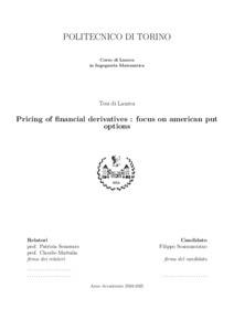 Pricing of Financial Derivatives: Focus on American Put Options.