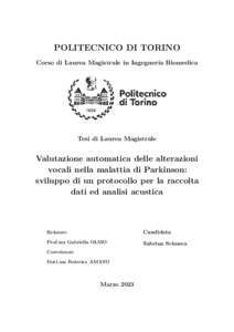 Valutazione automatica delle alterazioni vocali nella malattia di Parkinson: sviluppo di un protocollo per la raccolta dati ed analisi acustica = Automatic assessment of voice impairment in Parkinson’s disease: development of a protocol for data collection and acoustic analysis.