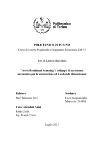 "Avris Rotational Scanning": sviluppo di un sistema automatico per la misurazione ed il collaudo dimensionale.