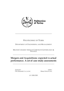 Mergers and Acquisitions: expected vs actual performance. A set of case study assessments.