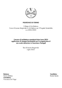 Concorso di architettura umanitaria Kaira Looro 2023: applicazione di strategie bioclimatiche per la progettazione di una scuola elementare in Casamance (Senegal = Kaira Looro 2023 humanitarian architecture competition: bioclimatic strategies application for the design of a primary school in Casamance (Senegal).