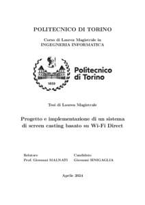 Progetto e implementazione di un sistema di screen casting basato su WiFi Direct = Design and implementation of a screen casting system based on WiFi Direct.