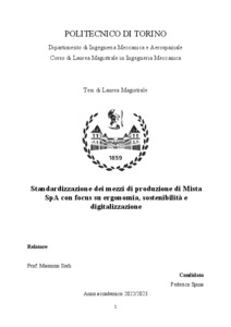 Standardizzazione dei mezzi di produzione di Mista SpA con focus su ergonomia, sostenibilità e digitalizzazione.