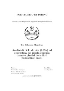 Analisi di ciclo di vita (LCA) ed energetica del riciclo chimico tramite pirolisi dei rifiuti poliolefinici mist = Life cycle assessment (LCA) and energetic analysis of chemical recycling via pyrolysis of mixed polyolefin waste.