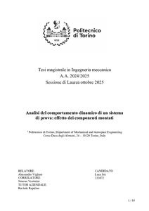 Analisi del comportamento dinamico di un sistema di prova: effetto dei componenti montati = Analysis of the dynamic behaviour of a test system: influence of the installed components.