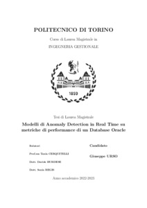 Modelli di Anomaly Detection in Real Time su metriche di performance di un Database Oracle = Real-Time Anomaly Detection Models on Performance Metrics of an Oracle Database.