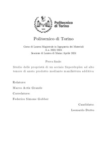 Studio delle proprietà di un acciaio Superduplex ad alto tenore di azoto prodotto mediante manifattura additiva = Study on the properties of an high nitrogen content Superduplex stainless steel obtained trough additive manufacturing.