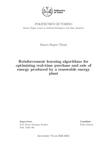 Reinforcement learning algorithms for optimizing real-time purchase and sale of energy produced by a renewable energy plant.