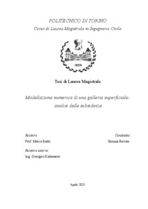 Modellazione numerica di una galleria superficiale: analisi delle subsidenze = Numerical modelling of a shallow tunnel: settlements analysis.