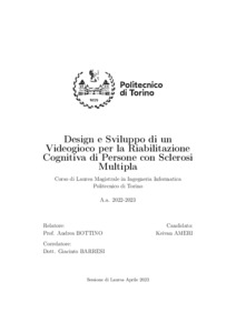 Design e Sviluppo di un Videogioco per la Riabilitazione Cognitiva di Persone con Sclerosi Multipla = Design and Development of a Video Game for Cognitive Rehabilitation of People with Multiple Sclerosis.