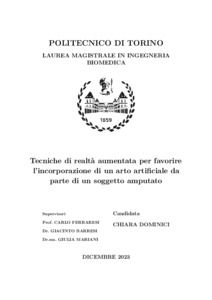 Tecniche di realtà aumentata per favorire l’incorporazione di un arto artificiale da parte di un soggetto amputato = Augmented reality techniques to facilitate the embodiment of an artificial limb by an amputee.
