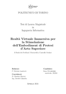 Realtà Virtuale Immersiva per la Stimolazione dell’Embodiment di Protesi d’Arto Superiore: Il Ruolo dei Feedback Vibrotattili a Controllo Oculare = Immersive Virtual Reality for Embodiment Stimulation of Upper Limb Prostheses: The Role of Eye Controlled Vibrotactile Feedbacks.