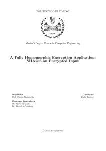 A Fully Homomorphic Encryption Application: SHA256 on Encrypted Input.