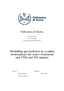 Modelling gas hydrates in a saline environment for water treatment and CO2 and N2 capture.