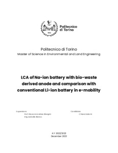 LCA of Na-ion battery with bio-waste derived anode and comparison with conventional Li-ion battery in e-mobility.