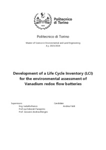 Development of a Life Cycle Inventory (LCI) for the environmental assessment of Vanadium redox flow batteries.