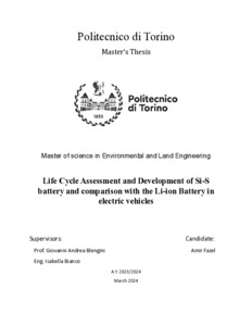 Life Cycle Assessment and Development of Si-S battery and comparison with the Li-ion Battery in electric vehicles.