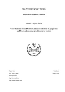 Convolutional Neural Network diseases detection of grapevines and UAV autonomous precision spray control.