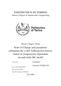 State of Charge and parameter estimation for a 48V Lithium-Ion battery based on temperature dependent second-order RC model.