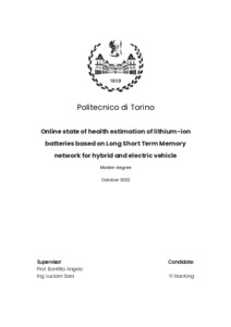 Online state of health estimation of lithium-ion batteries based on Long Short Term Memory network for hybrid and electric vehicles.