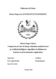 Comparison of state of charge estimation methods based on Artificial Intelligence algorithms for lithium-ion batteries used in automotive applications.