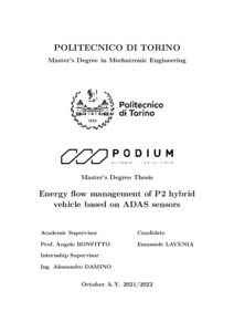 Energy flow management of P2 hybrid vehicle based on ADAS sensors.