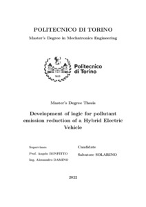 Development of logic for pollutant emission reduction of a Hybrid Electric Vehicle.