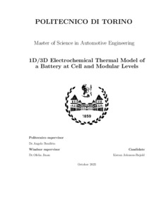 1D/3D Electrochemical Thermal Model of a Battery at Cell and Modular Levels.