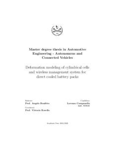 Deformation modeling of cylindrical cells and wireless management system for direct cooled battery packs.