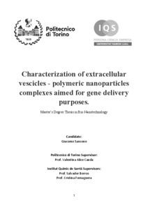 Caratterizzazione di complessi vescicole extracellulari - nanoparticelle polimeriche per gene delivery = Characterization of extracellular vescicles - polymeric nanoparticles complexes aimed for gene delivery purposes.