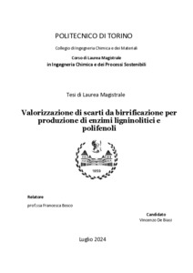 Valorizzazione di scarti da birrificazione per produzione di enzimi ligninolitici e polifenoli = Valorization of Brewer's spent grain for the Production of Ligninolytic Enzymes and Polyphenols.