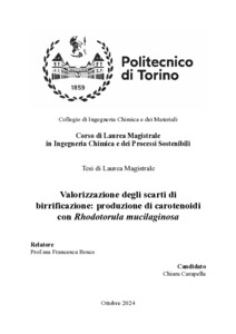 Valorizzazione degli scarti di birrificazione: processi di fermentazione con R. mucilaginosa per la produzione di carotenoidi = Exploitation of brewing spent grain : fermentation processes with R. mucilaginosa for the production of carotenoids.