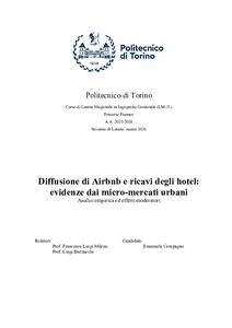 Diffusione di Airbnb e ricavi degli hotel: evidenze dai micro-mercati urbani; Analisi empirica ed effetti moderatori = Airbnb Penetration and Hotel Revenues: evidence from Urban Micro-Markets ; Empirical Analysis of Moderating Effects.