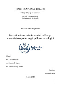 Meccanismi di spillover tecnologico: un’analisi comparata tra brevetti universitari e industriali in Europa = Technological Spillover Mechanisms: A Comparative Analysis of University and Industrial Patents in Europe.