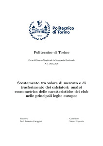 Scostamento tra valore di mercato e di trasferimento dei calciatori: analisi econometrica delle caratteristiche dei club nelle principali leghe europee = Determinants of the Gap Between Market Value and Transfer Value of Football Players: An Econometric Analysis of Club Characteristics in the Major European Leagues.