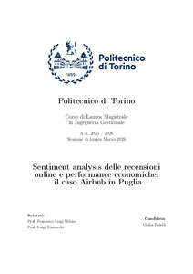 Sentiment analysis delle recensioni online e performance economiche: il caso Airbnb in Puglia = Sentiment analysis of online reviews and economic performance: the Airbnb case in Puglia.