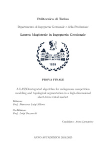 Algoritmo a integrazione LASSO per la modellazione endogena della competizione e la segmentazione topologica del mercato nei contesti ad alta dimensionalità degli affitti brevi = A LASSO-integrated algorithm for endogenous competition modeling and topological segmentation in a high-dimensional short-term rental market.