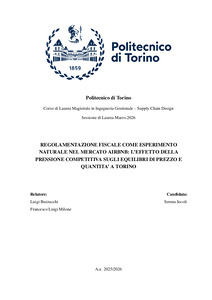 REGOLAMENTAZIONE FISCALE COME ESPERIMENTO NATURALE NEL MERCATO AIRBNB: L’EFFETTO DELLA PRESSIONE COMPETITIVA SUGLI EQUILIBRI DI PREZZO E QUANTITA’ A TORINO = FISCAL REGULATION AS A NATURAL EXPERIMENT IN THE AIRBNB MARKET: THE EFFECT OF COMPETITIVE PRESSURE ON PRICE AND QUANTITY EQUILIBRIA IN TURIN.