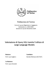 Valutazione di Query SQL tramite l’utilizzo di Large Language Models = Evaluation of SQL exercises using Large Language Models.