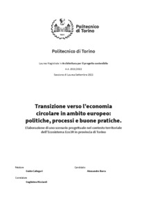 Transizione verso l’economia circolare in ambito europeo: politiche, processi e buone pratiche. Elaborazione di uno scenario progettuale nel contesto territoriale dell'Ecosistema Eco3R in provincia di Torino = Transition to a circular economy at the European level: policies, processes and good practices. Elaboration of a project scenario in the territorial context of the Eco3R ecosystem in the province of Turin.