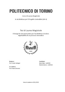 Il Design for Deconstruction per l’architettura circolare. Applicabilità di un processo innovativo = The Design for Deconstruction for circular architecture. Applicability of an innovative process.