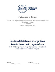Le sfide del sistema energetico e l'evoluzione della regolazione Ruolo dell'Energy System Integration e analisi dei modelli di incentivazione nel contesto europeo = The challenges of the energy system and the evolution of regulation The role of Energy System Integration and the analysis of incentive models in the European context.