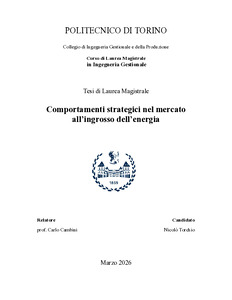 Rel. Carlo Cambini. Politecnico di Torino, Corso di laurea magistrale in Ingegneria Gestionale, 2026