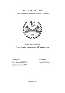 Power to gas - metanazione dell'idrogeno gas = Power to gas - hydrogen gas methanation.