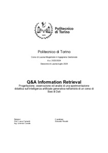 Q&A Information Retrieval - Progettazione, osservazione ed analisi di una sperimentazione didattica sull’intelligenza artificiale generativa nell'ambito di un corso di Basi di Dati = Q&A Information Retrieval - Design, Observation, and Analysis of an Educational Experiment on Generative Artificial Intelligence within a Database Course.