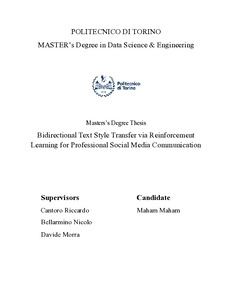 Bidirectional Text Style Transfer via Reinforcement Learning for Professional Social Media Communication.