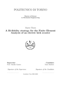 A Bi-fidelity strategy for the Finite Element Analysis of an electric kick scooter.